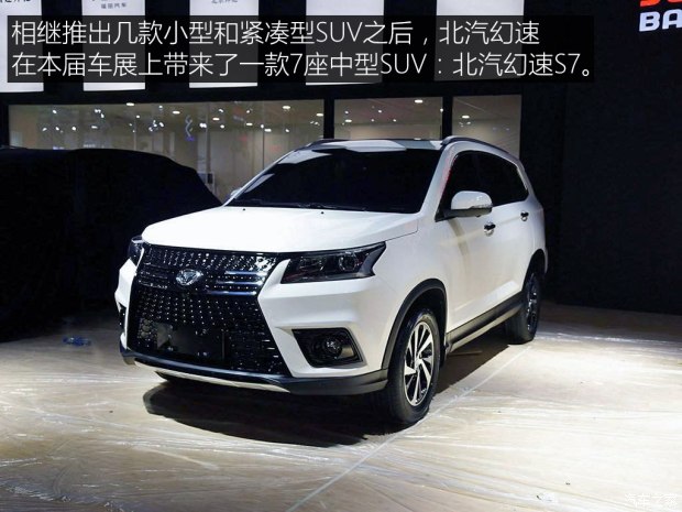 在本届成都车展上,北汽幻速带来了一款全新的SUV车型,和之前的北汽幻速S3/S5不同,这辆北汽幻速S7定位中型7座中型SUV,并且轴距达到了2780mm。